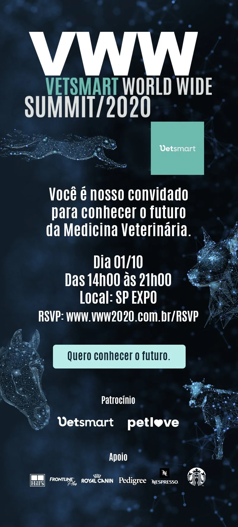 para médicos veterinários, como precursora da transformação digital de grandes eventos no segmento no Brasil e América Latina, trazendo parceiros, palestrantes renomados